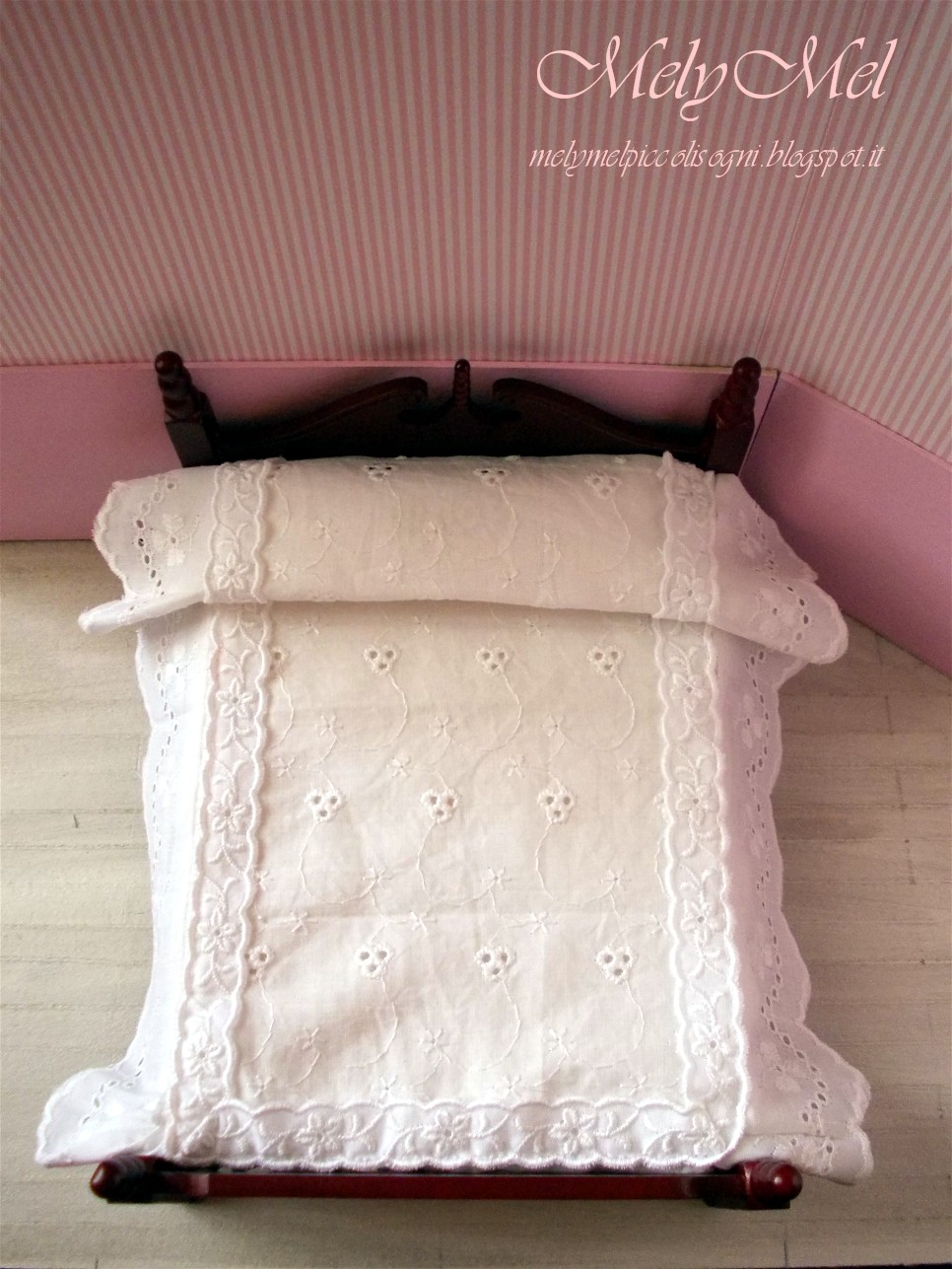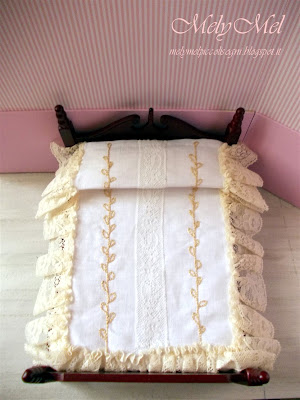 Lovely bed linens, so delicate an beautifully made. Congratulations for Isabel's precious gifts.