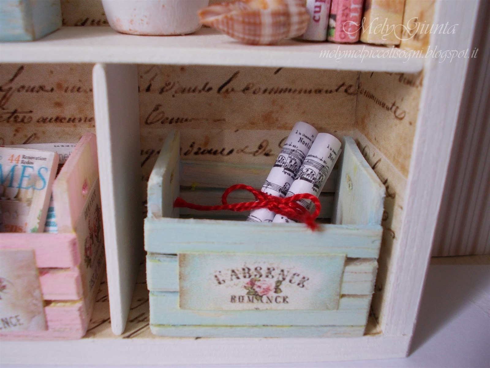 Terzo ripiano, la scatola a cui ho aggiunto un contenuto, qualche libro ( non sfogliabile) dedicato alla pasticceria, una conchiglia e la brocca, un'altro stupendo regalo di Patty.